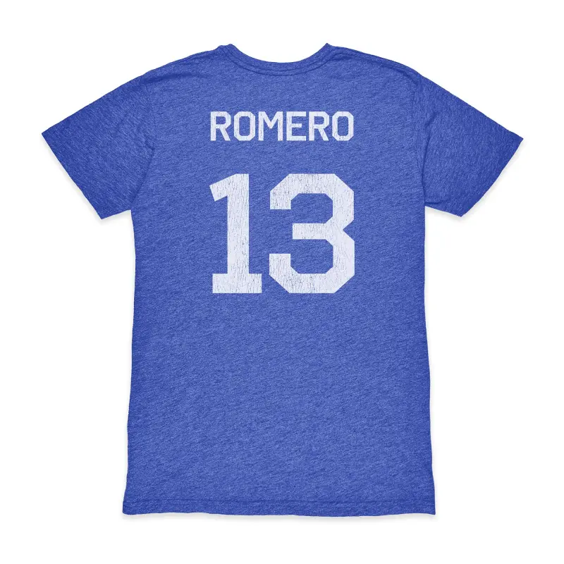 - Distressed screen print of the player’s name and number on the back